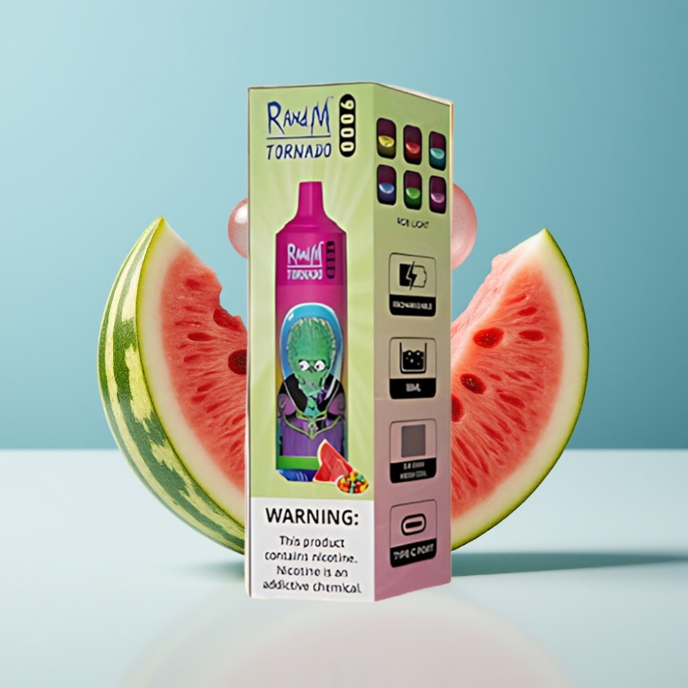 RandM Fumot Tornado 9000 Puffs 18mL Watermelon Bubble Gum Mesh Coil RGB Display