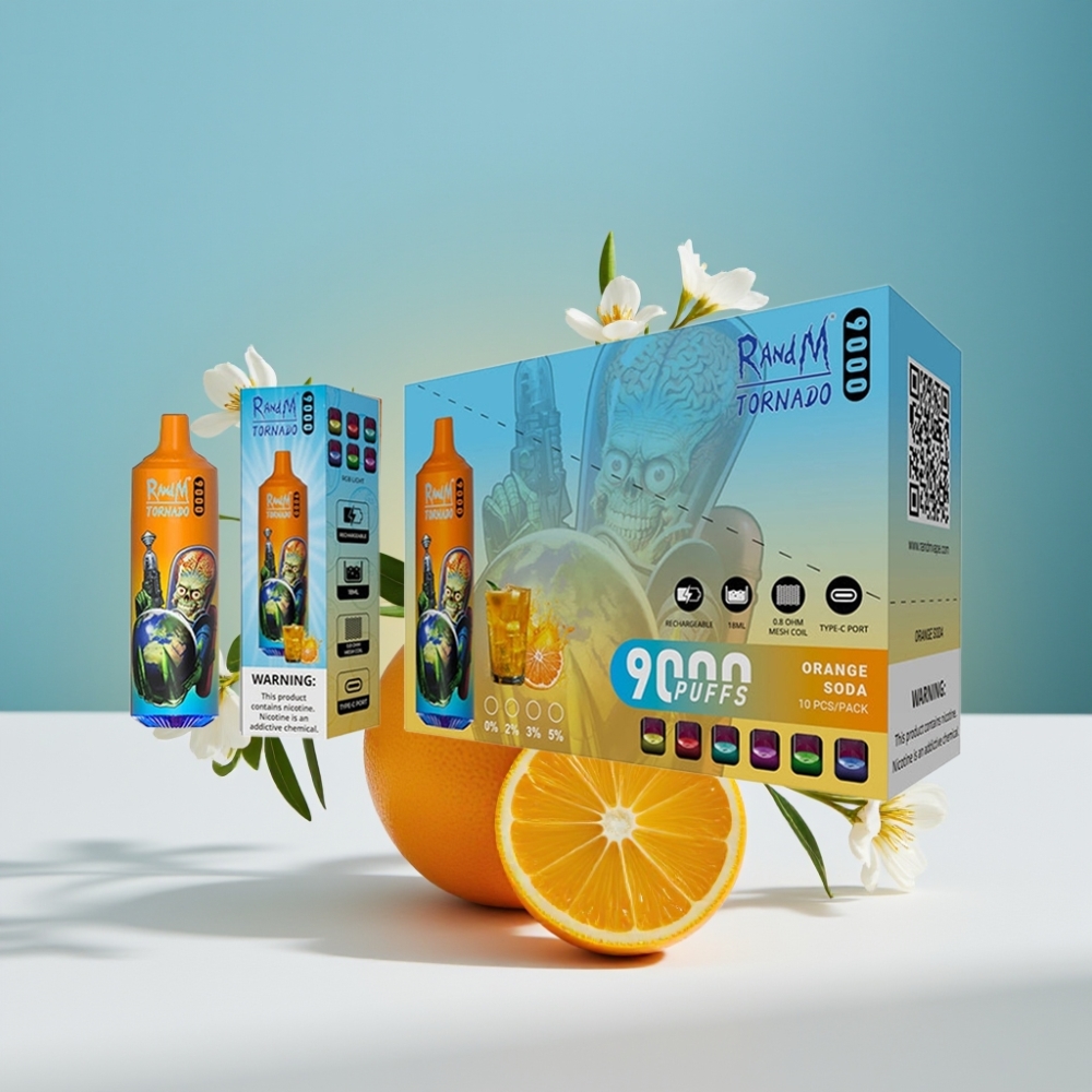 RandM Tornado 9000 Puffs 18 mL Mesh Coil RGB Display Портокалова сода