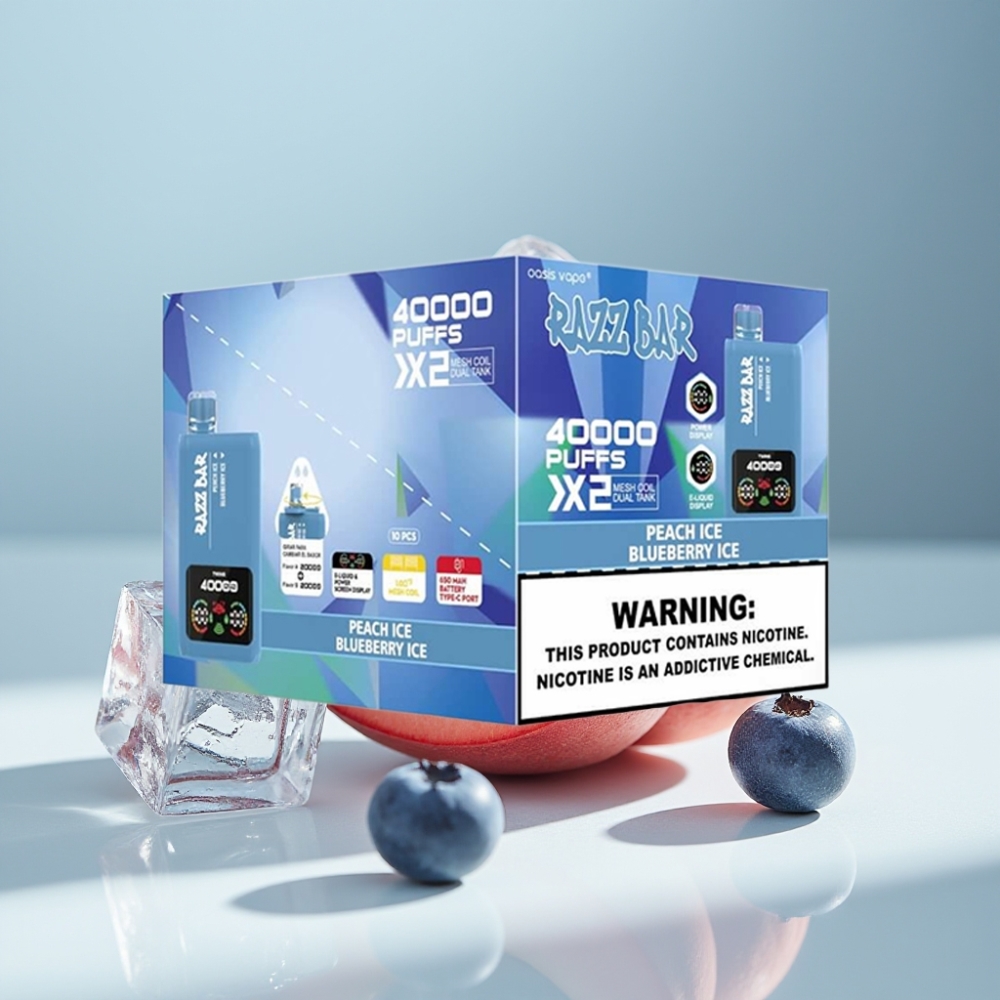 Razz Bar 40000 Puffs Еднократна Vape с ПРАСКОВ ЛЕД & БЛУБЕРИ ЛЕД, Power Screen Display, 650mAh