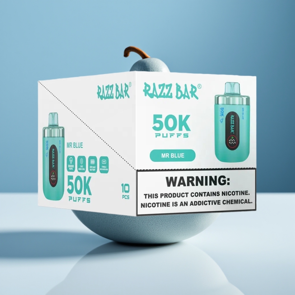 Razz Bar 50K Puffs Еднократна Vape Господин Син с 1.0 Ohm Mesh Coil и Type-C
