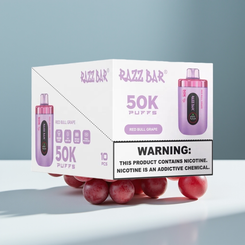 Razz Bar 50K Puffs Еднократна Vape 650mAh Type-C Червен бик грозде