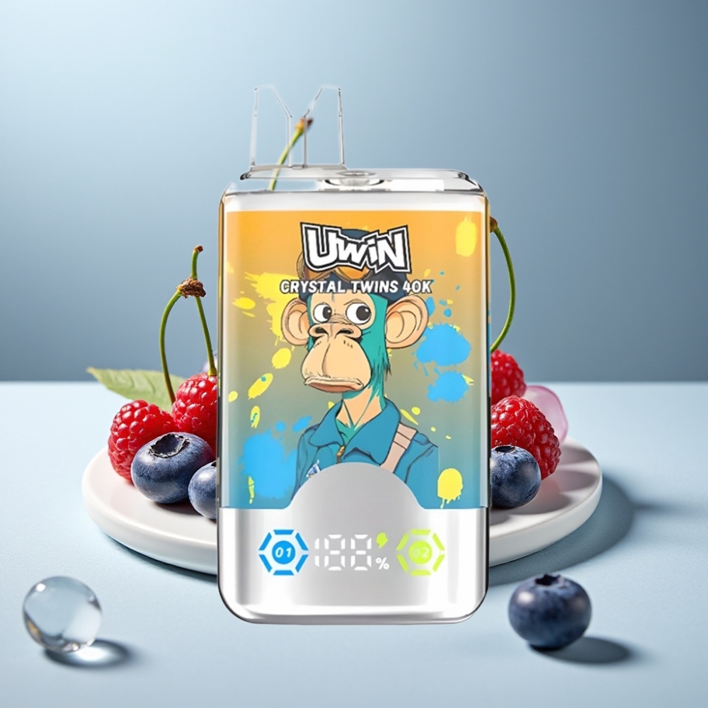 UWIN Crystal Twins 40000 Puffs Две вкуса с мрежов намотка Черница Малина Череша Лед