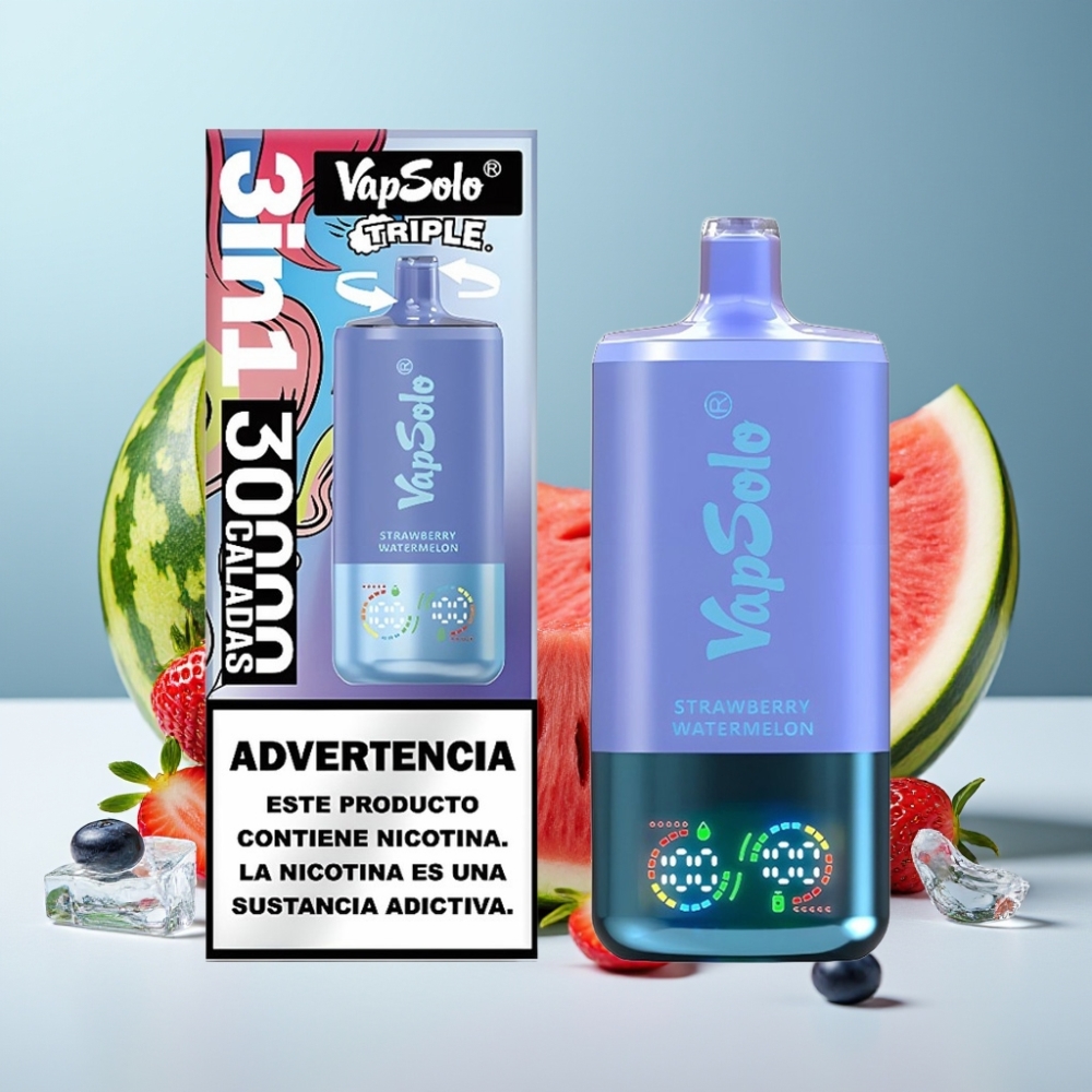 VapSolo Triple 30000 Puffs 40ml Ягоди Диня & Синьо Боровинков Мраз