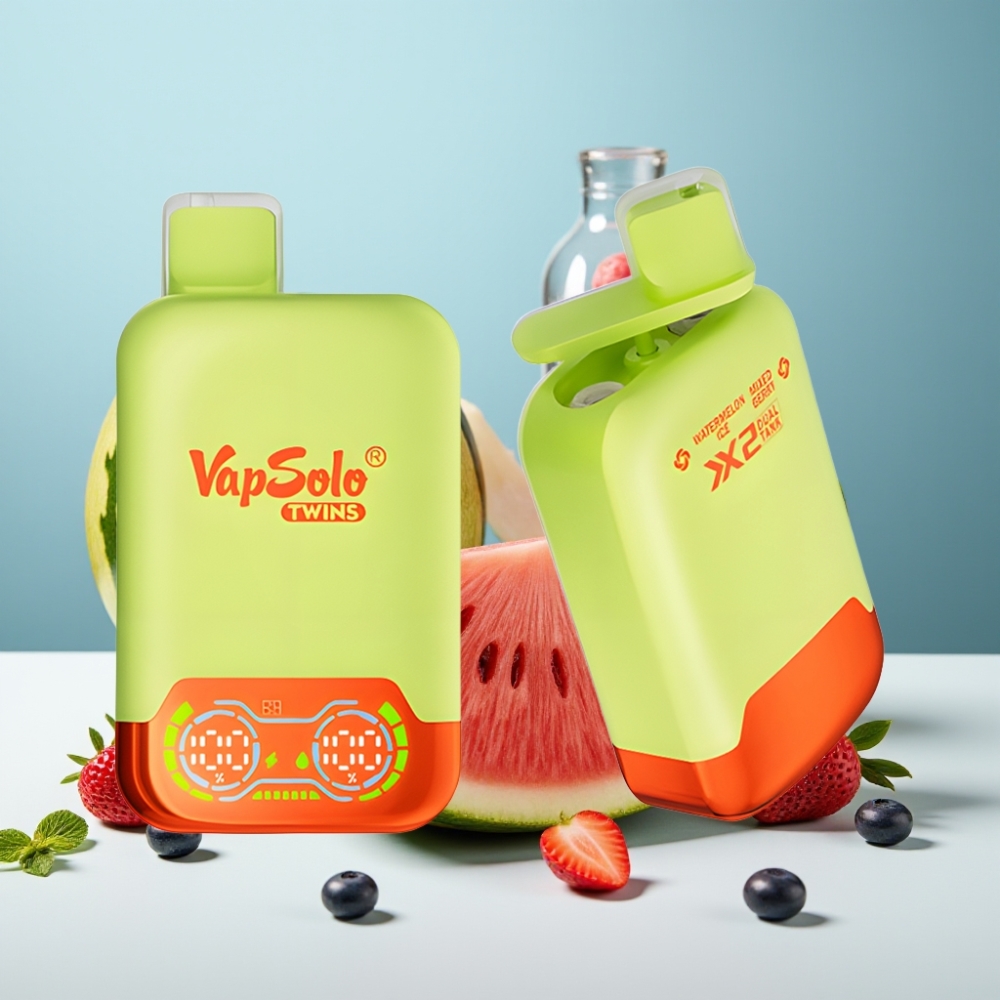 Vapsolo Twins 20000 Puffs е висококачествен едноразов vape устройство с дълъг живот на батерията и интензивно изпарително изживяване. Перфектен за дистрибутори, търсещи надеждни продукти за vape wholesale Bulgaria, този модел предлага голям капацитет, двойна технология за изпаряване и бърза зареждане чрез Type-C порт.