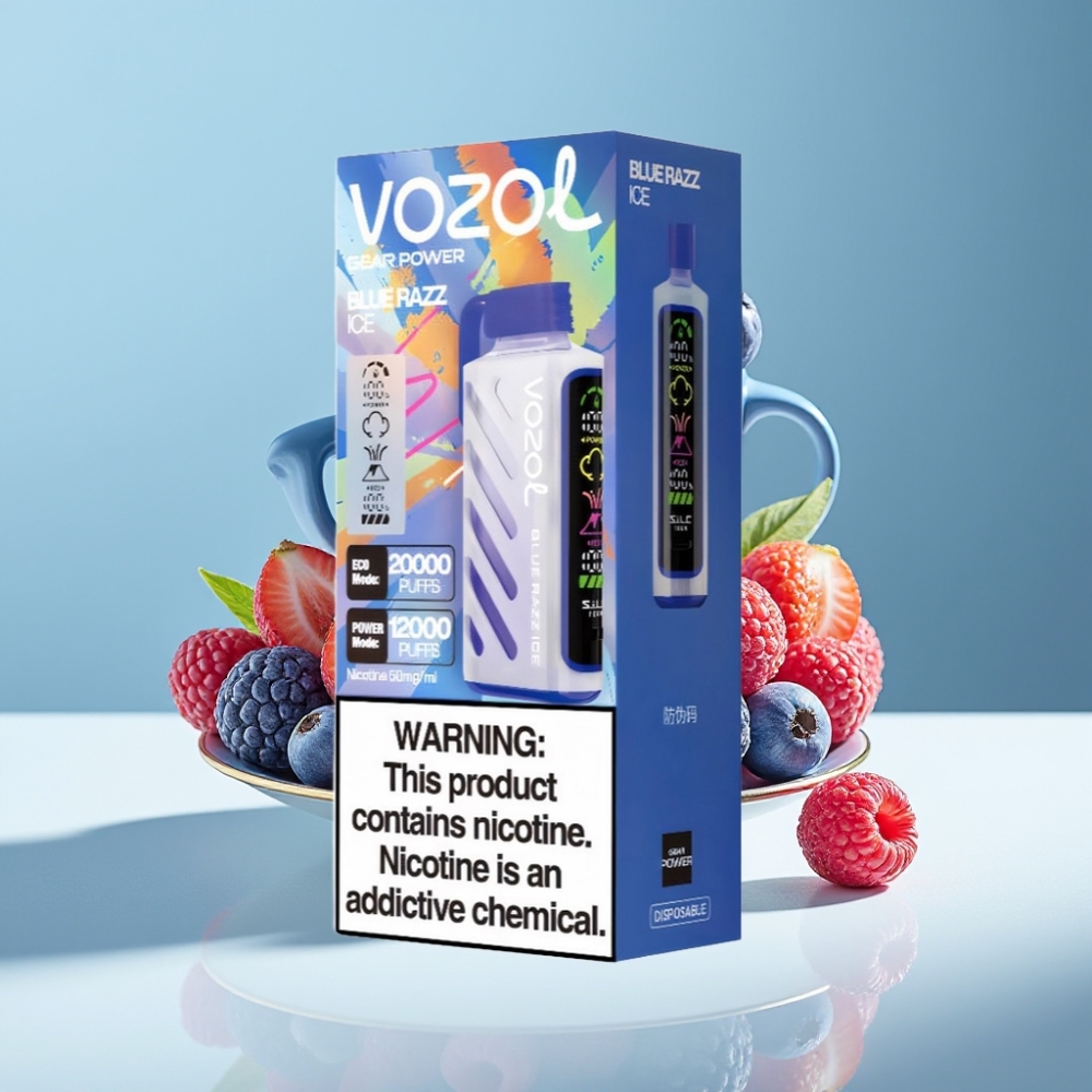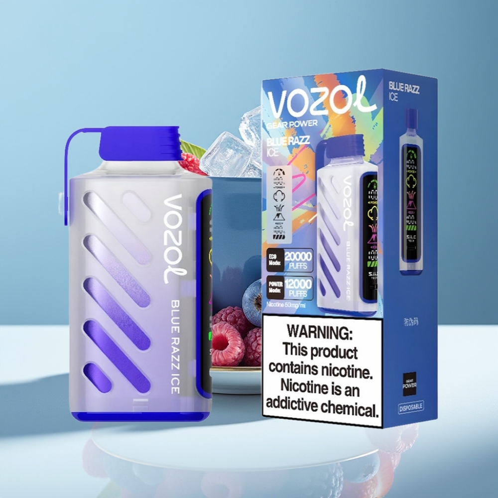 VOZOL Gear Power 20000 Puffs Dual Mesh Coil Full Screen Display Синьо Малинов Лед