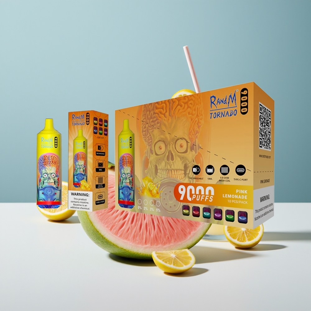 RandM Tornado 9000 Puffs 850mAh Rechargeable 18mL Mesh Coil RGB Display Розово лимонада