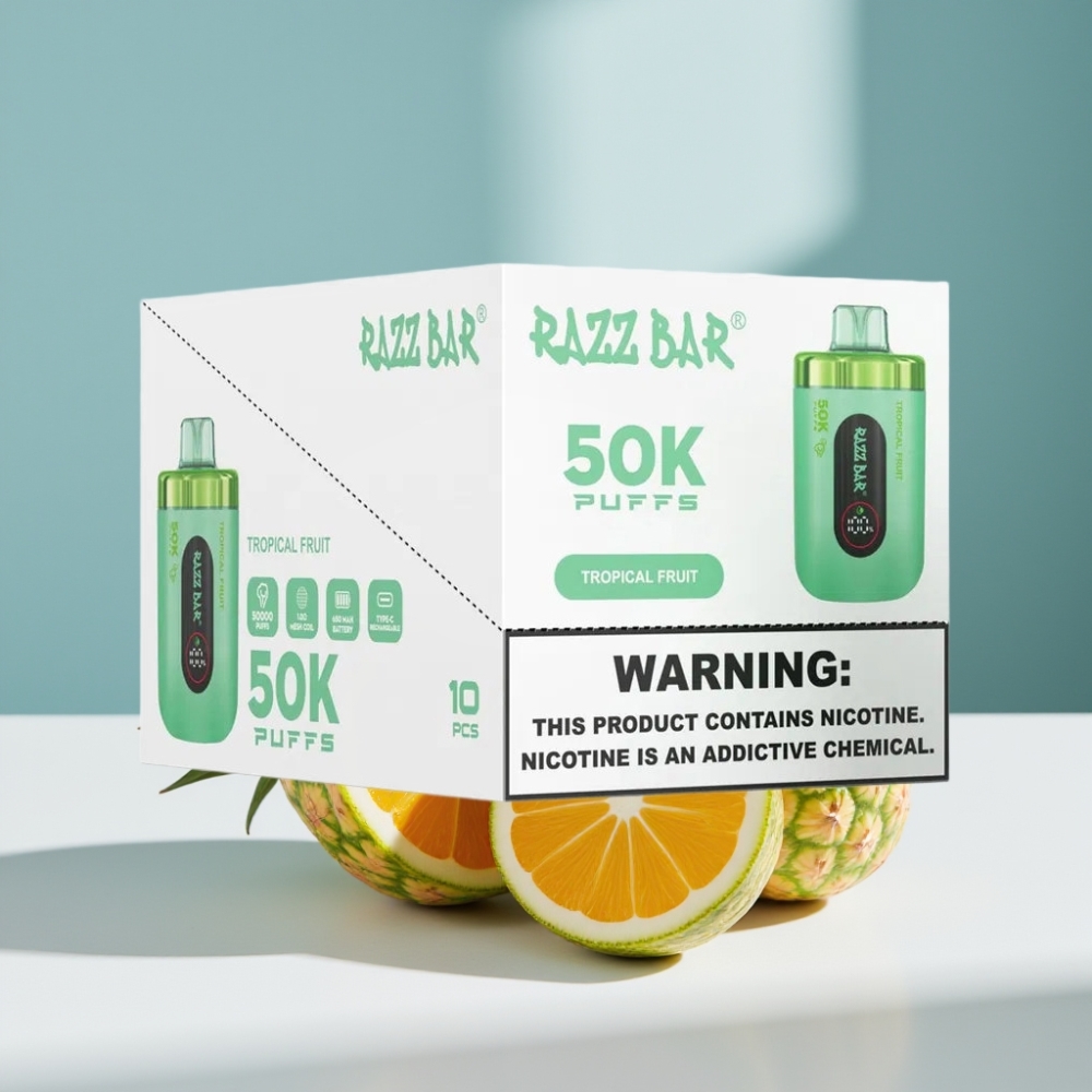 Razz Bar 50K Puffs Еднократна Vape Тропически плодов 650mAh 1.0Ohm Type-C