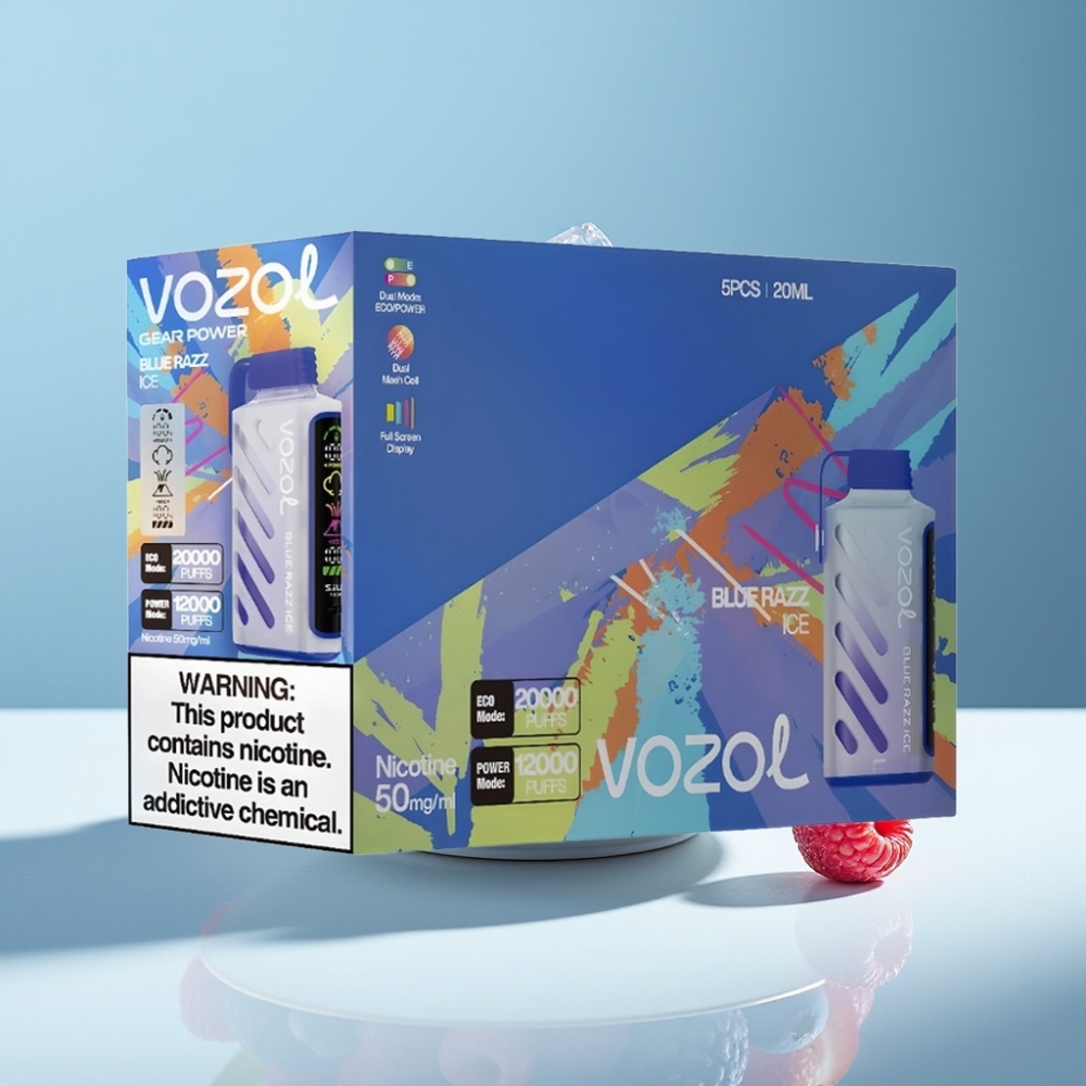 VOZOL Gear Power 20000 Puffs Dual Mesh Coil Full Screen Display Синьо Малинов Лед